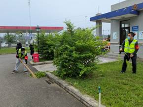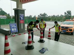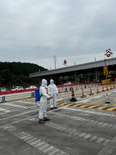 在收費站,黨員志愿者積極主動配合屬地政府開展疫情防控工作,不間斷開展場所消殺,疏導(dǎo)出站車輛,疏散滯留人員,清掃環(huán)境衛(wèi)生。